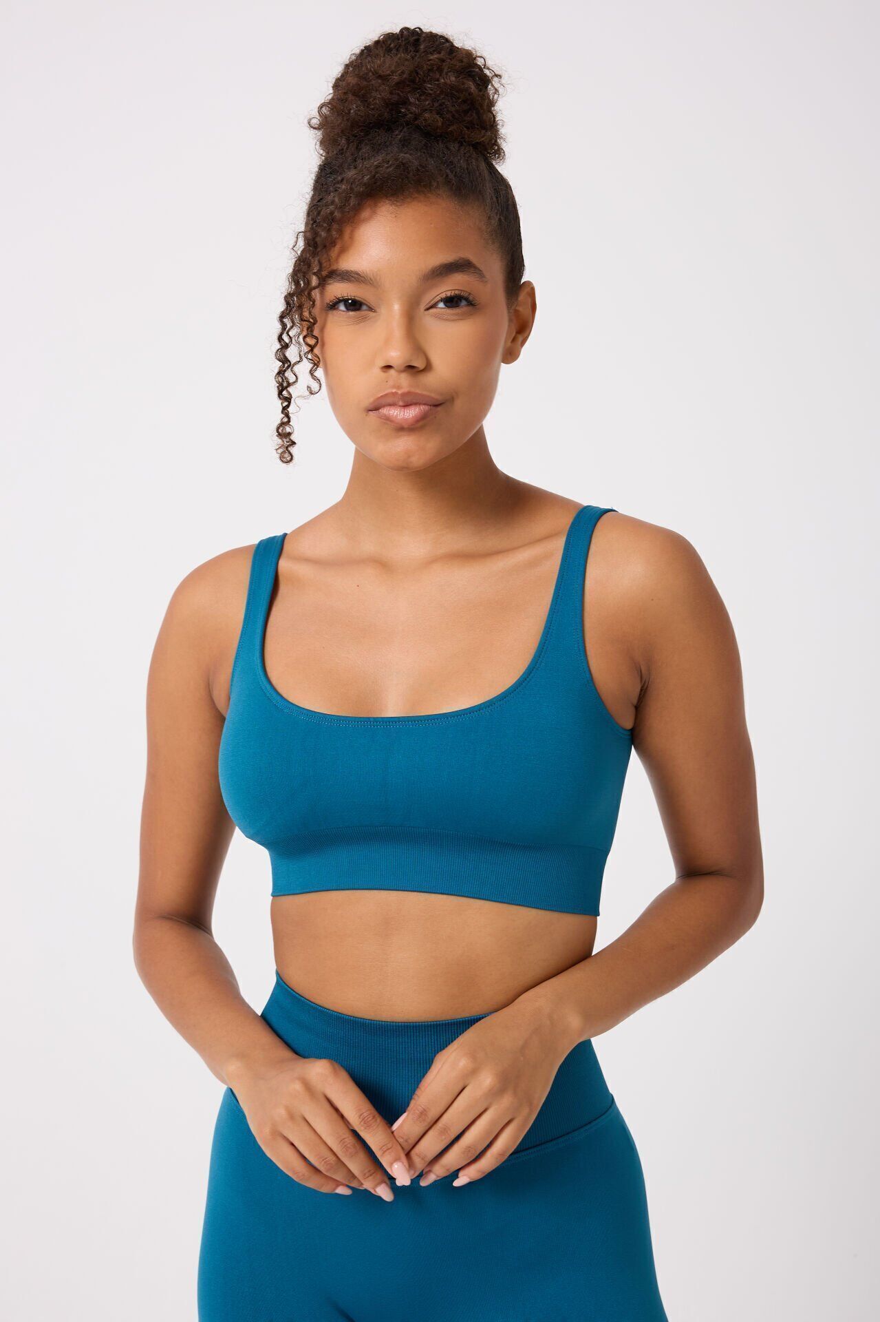 Askılı dinamik bir tasarıma sahip olan sporcu sütyeni bedeni sıkıca sarar, kıvrımları vurgular, iç göstermez.; Gögüs pedi vardır.; İz belli etmez.; Çift kat kumaş ile üretilen orta destekli sütyen, takıp çıkarılabilir pedlere sahip özellikleri ile rahat uyum sağlar.; Çıkarılabilir göğüs pedleri spor esnasında sabit duracak şekilde tasarlanmıştır.; Esnek yapısı sayesinde özgürce hareket edebilirsiniz.; Yumuşacık dokusu bedeninize üstün konfor sağlar.;